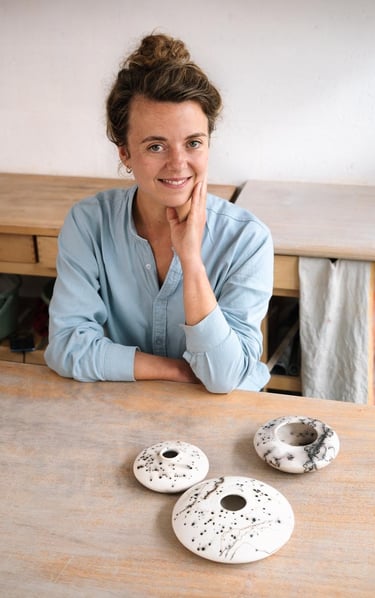 Diplômée de l’école du Louvre, Blanche Offret enseigne l’histoire de l’art et la poterie auprès de différentes institutions. Mêlant acquis théoriques et pratiques, sa production céramique restitue l’héritage du passé. Elle propose à l'Argile Club un cours inédit et interactif, où la théorie rencontre la convivialité.